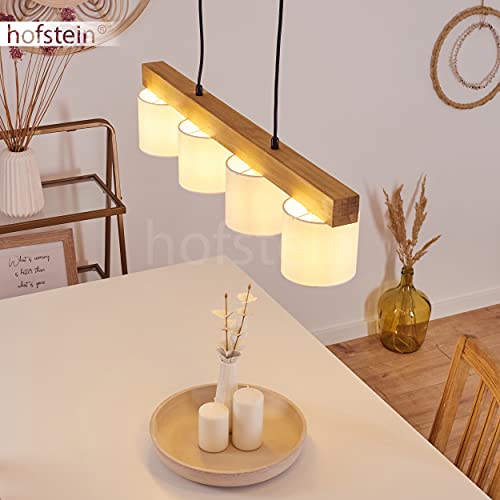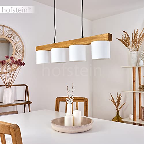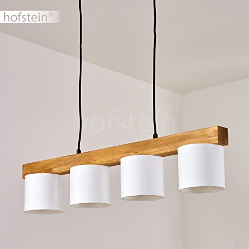 Hängelampe Metall Holz Stoff weiß