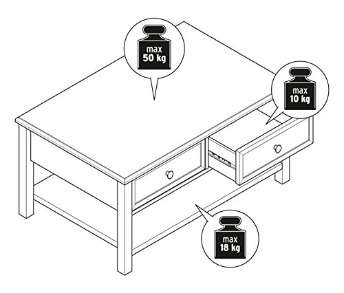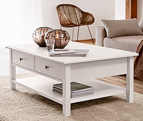 Sofa Tisch KOPENHAGEN weiß 2 Metallgriffe